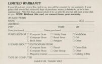 ![]() Penguin produced an excellent series of graphical adventures. Due to a copyright dispute with Penguin books, they were forced to change their name to Polarware and apparently are not allowed to say the name of that cute litlle South Pole dweller to this day.. ;). Sword of Kadash was an action/adventure game, and Xyphus was an RPG game. For a good laugh, read the last sentence of the fine print on the back of every Pengiun (not Polarware) box (the pictures should be high enough resolution that you can make it out..) |