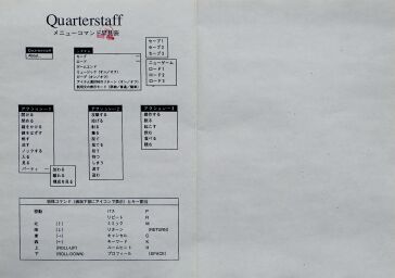 This is the rare Japanese release of the game. Comes complete with a Quarterstaff credit card(?) This is one of only a few Infocom titles that were ported over to Japanese computers.